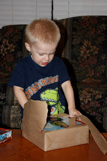 Then he opened our presents to him. The first one was a cash register. He always plays with these at his friend's house, so we knew he would enjoy one.